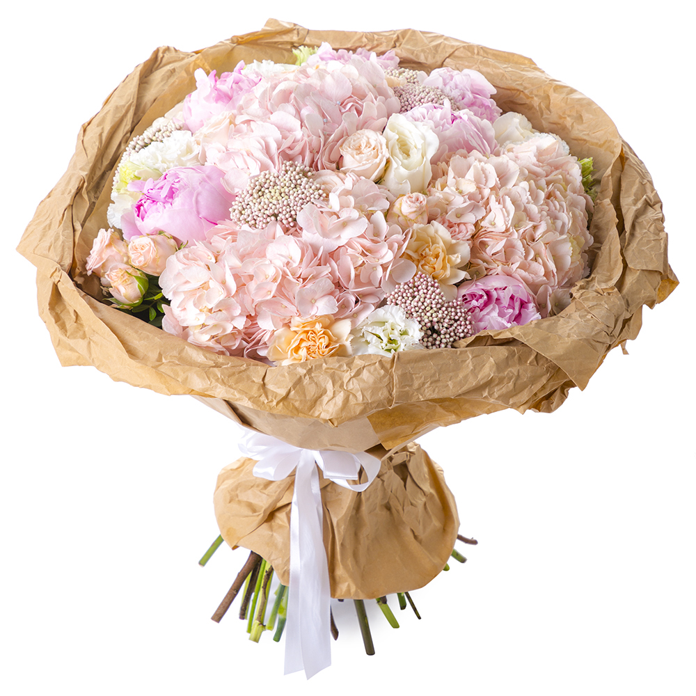 Букет с гортензией и пионами
