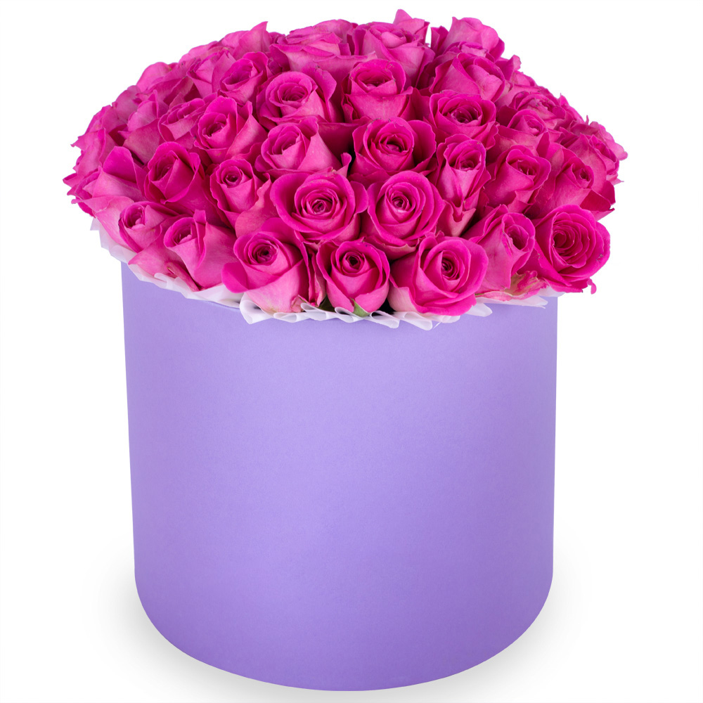 Букет из 51 розовой розы в фиолетовой шляпной коробке