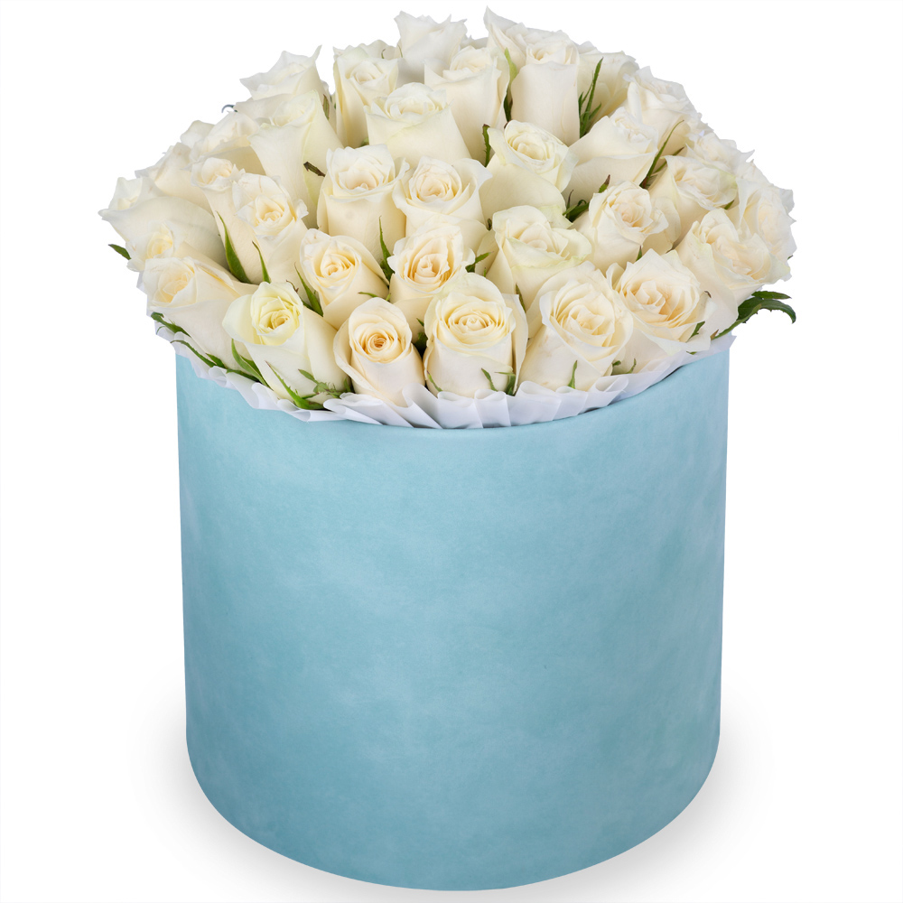 51 белая роза в бархатной шляпной коробке
