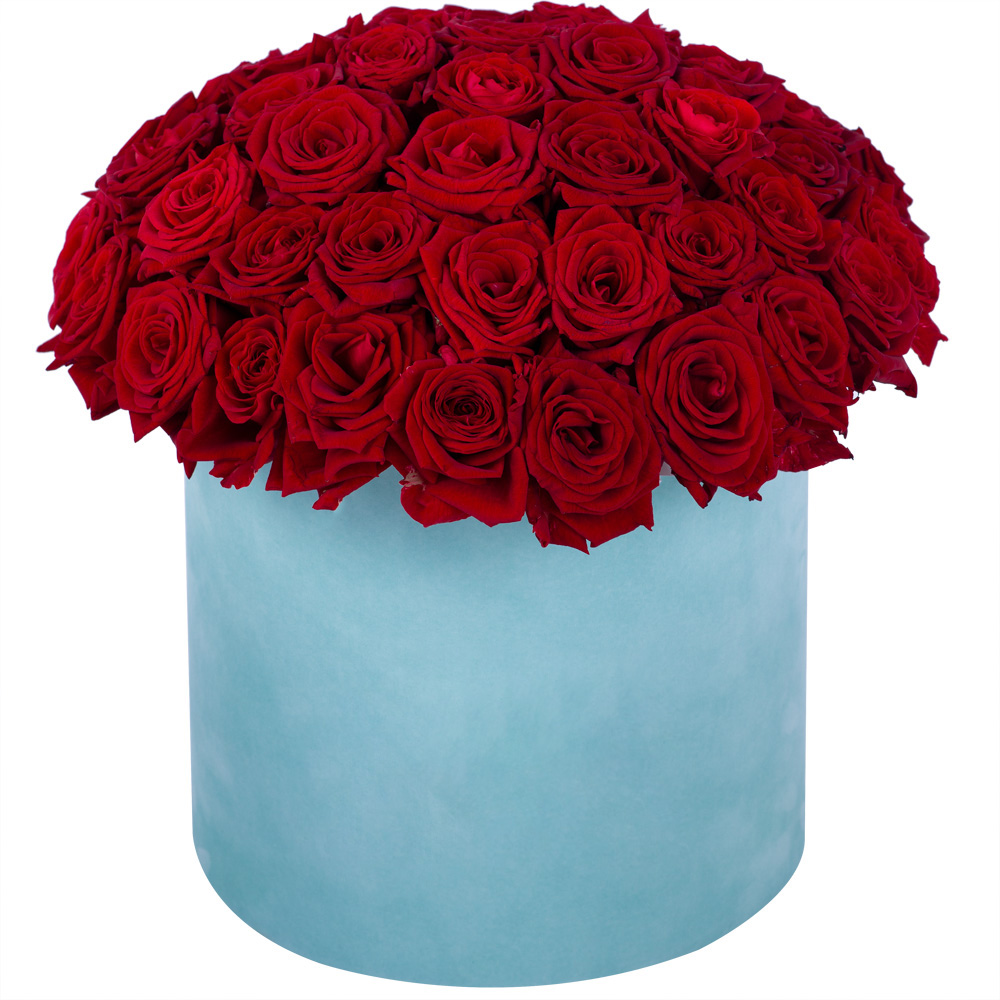 Букет из 51 красной розы premium в бархатной шляпной коробке