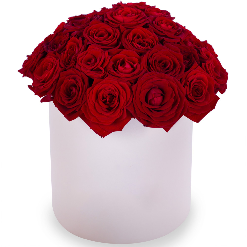 Букет из 35 красных роз premium в кремовой шляпной коробке