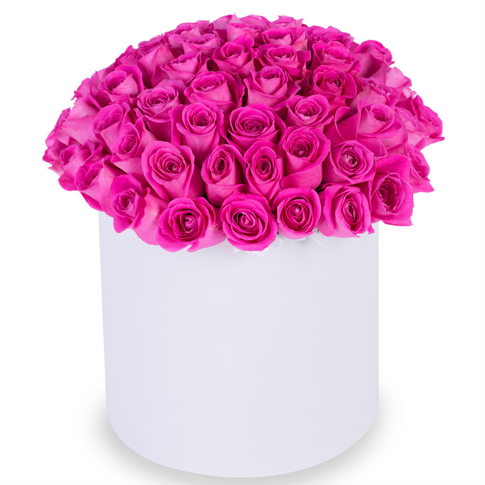 Букет из 75 розовых роз в белой шляпной коробке