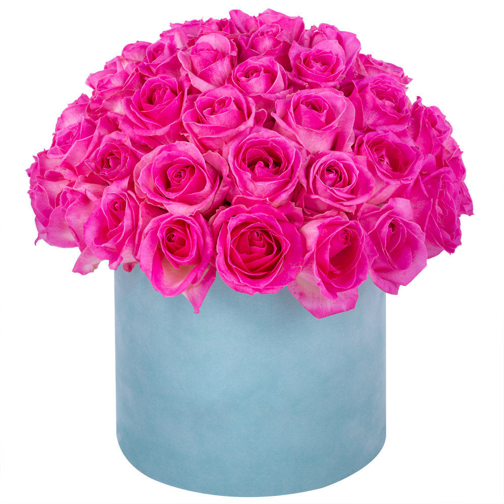 Букет из 51 малиновой розы premium в бархатной шляпной коробке