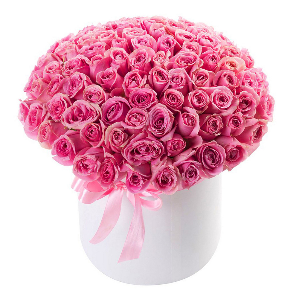 101 розовая роза в шляпной коробке