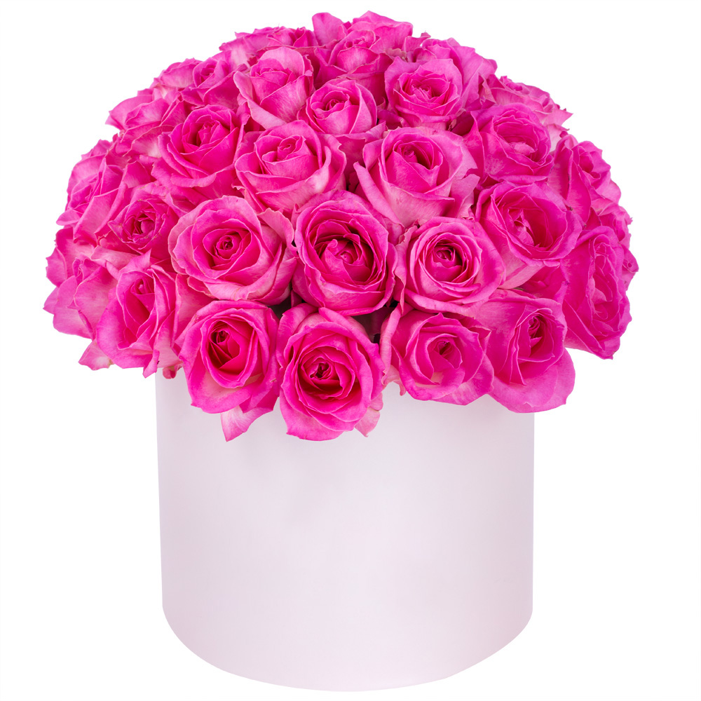 Букет из 51 малиновой розы premium в кремовой шляпной коробке