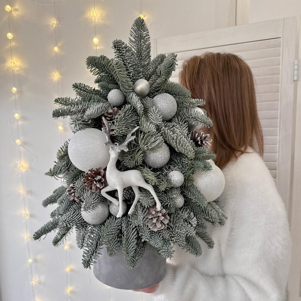Авторская живая ель из нобилиса с новогодним декором
