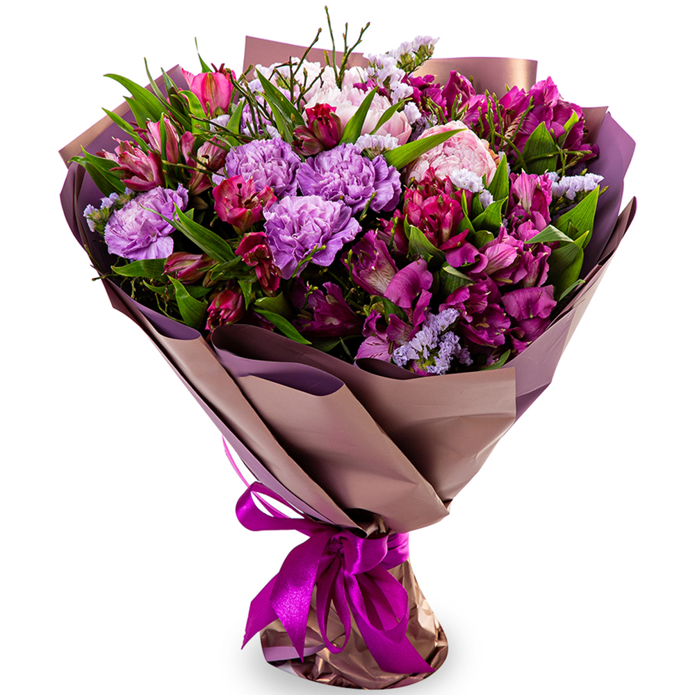 Букет из альстромерии, пионов и гвоздики