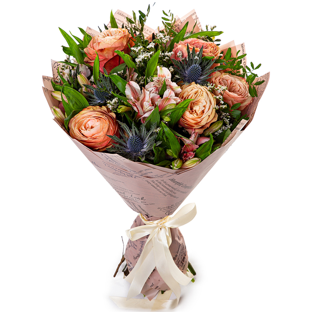 Букет из пионовидных роз и альстромерий