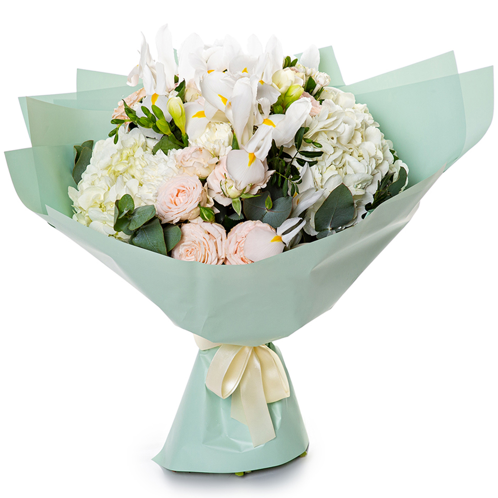 Букет из роз, гортензий и ирисов