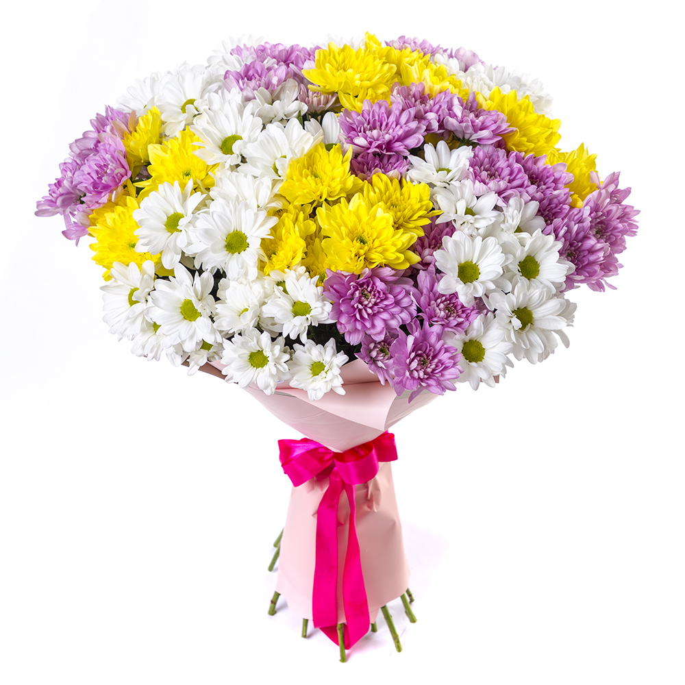 Букет из 21 разноцветной хризантемы