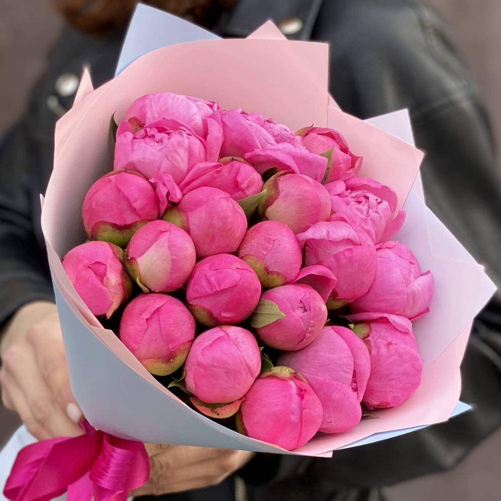 Букет из 21 розового пиона