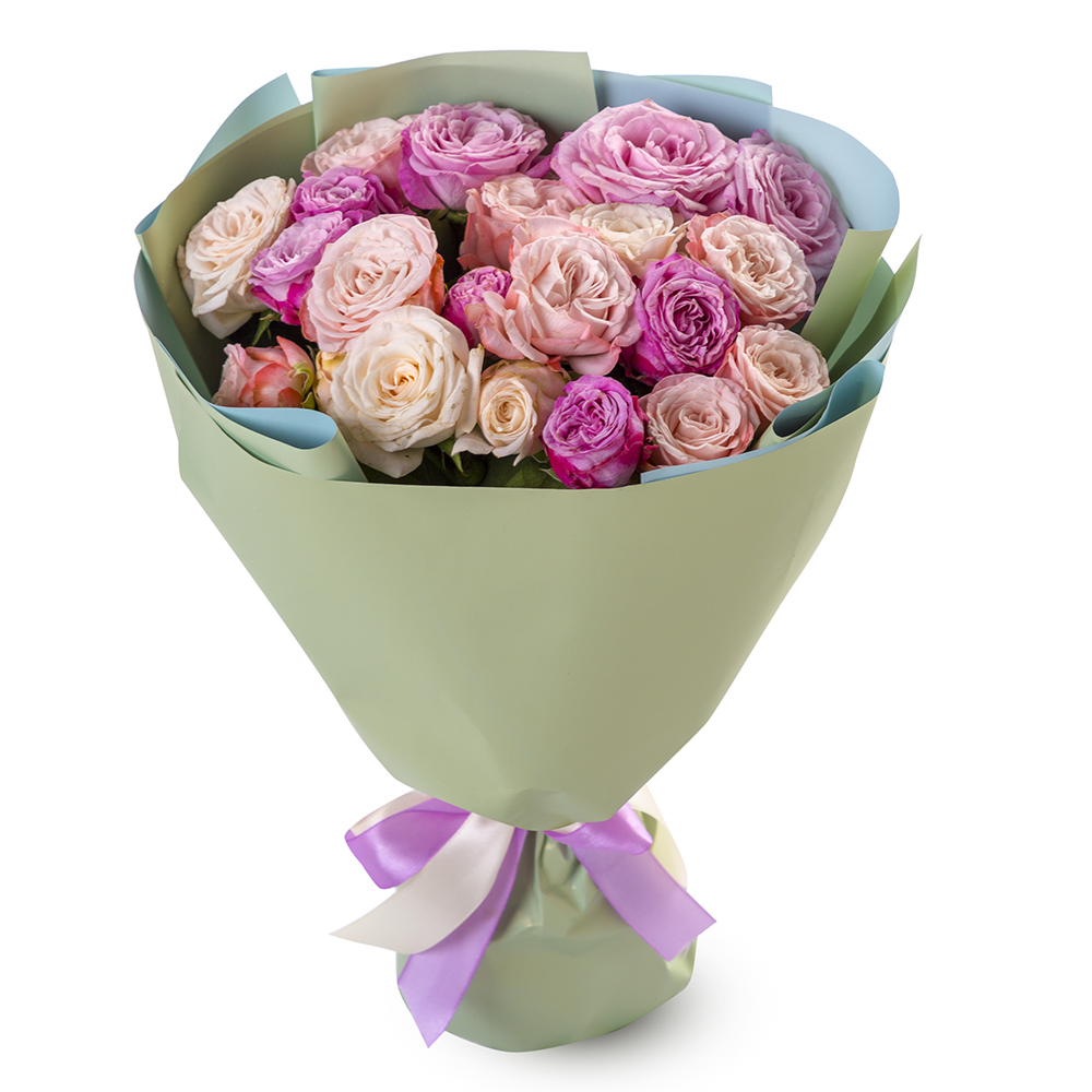 11 разноцветных кустовых роз