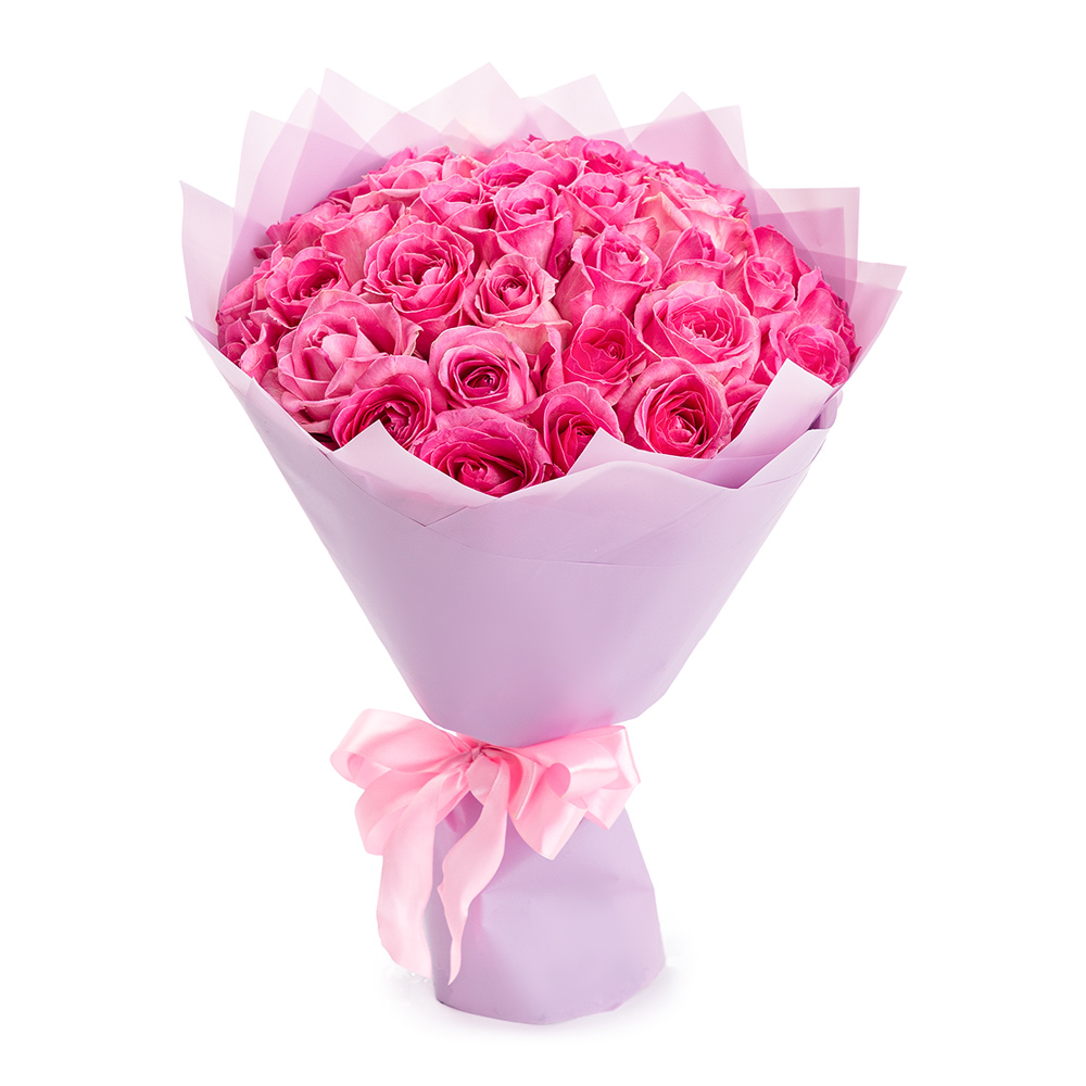 35 розовых роз в пленке