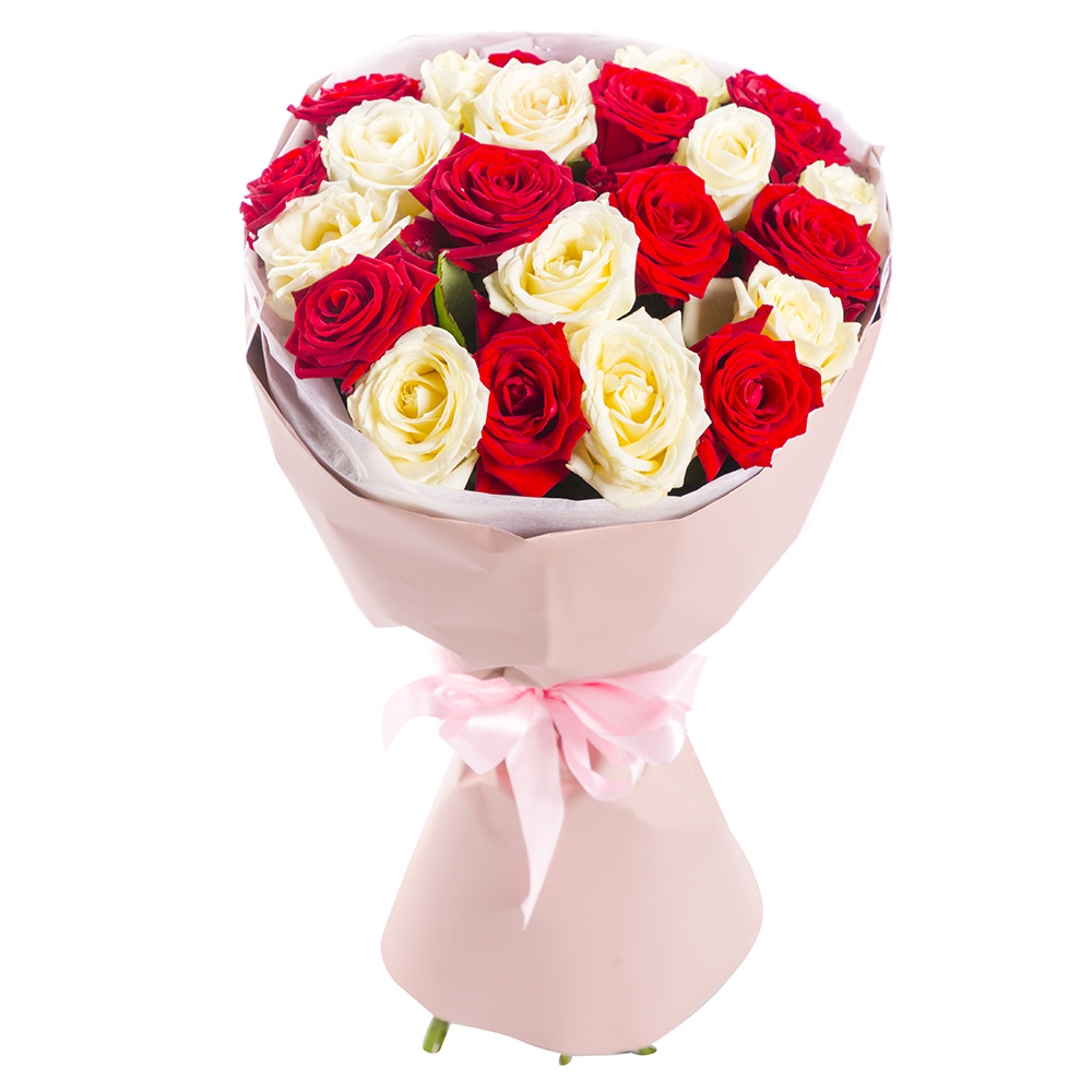 Букет из 21 разноцветной розы 60 см