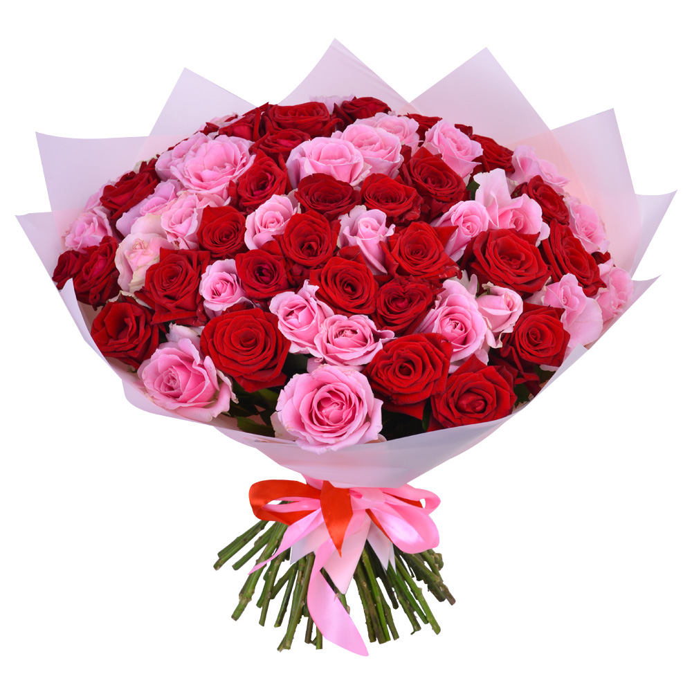 Букет из 75 красных и розовых роз Premium 40 см
