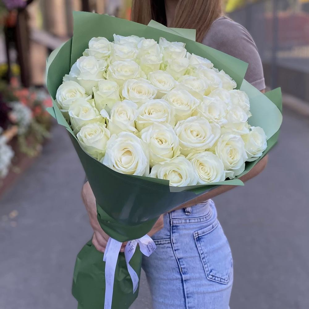 35 белых роз 50 см