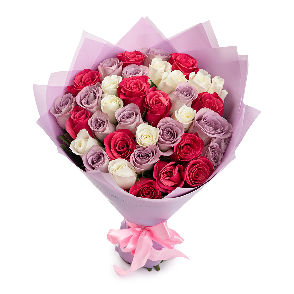 Букет из 25 разноцветных роз
