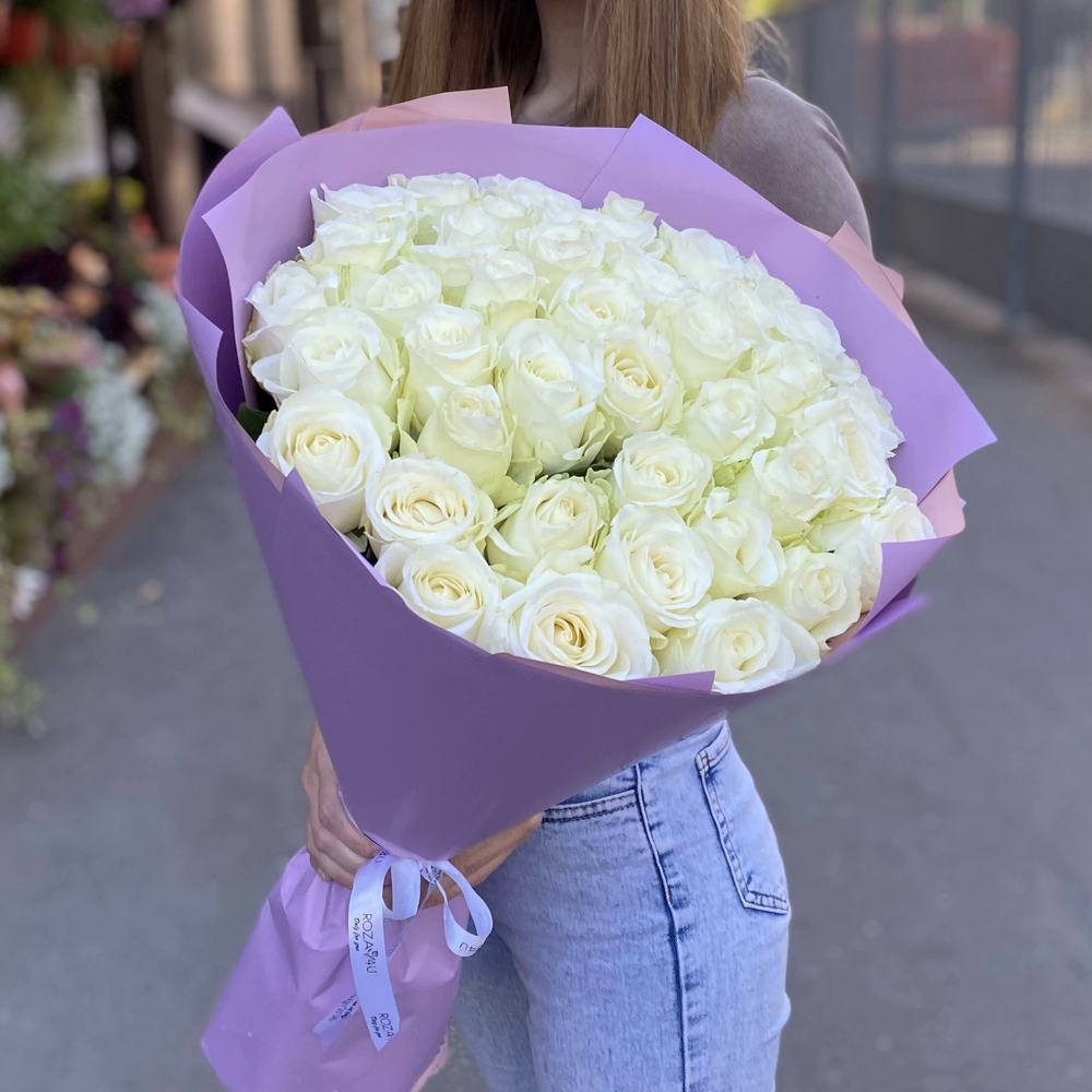 51 белая роза Premium 60 см