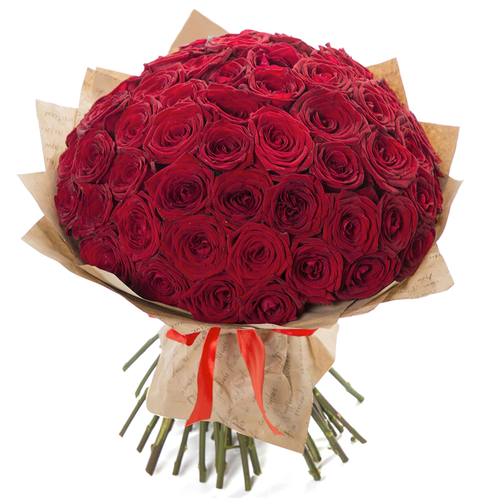Букет из 51 красной розы 40 см в крафте