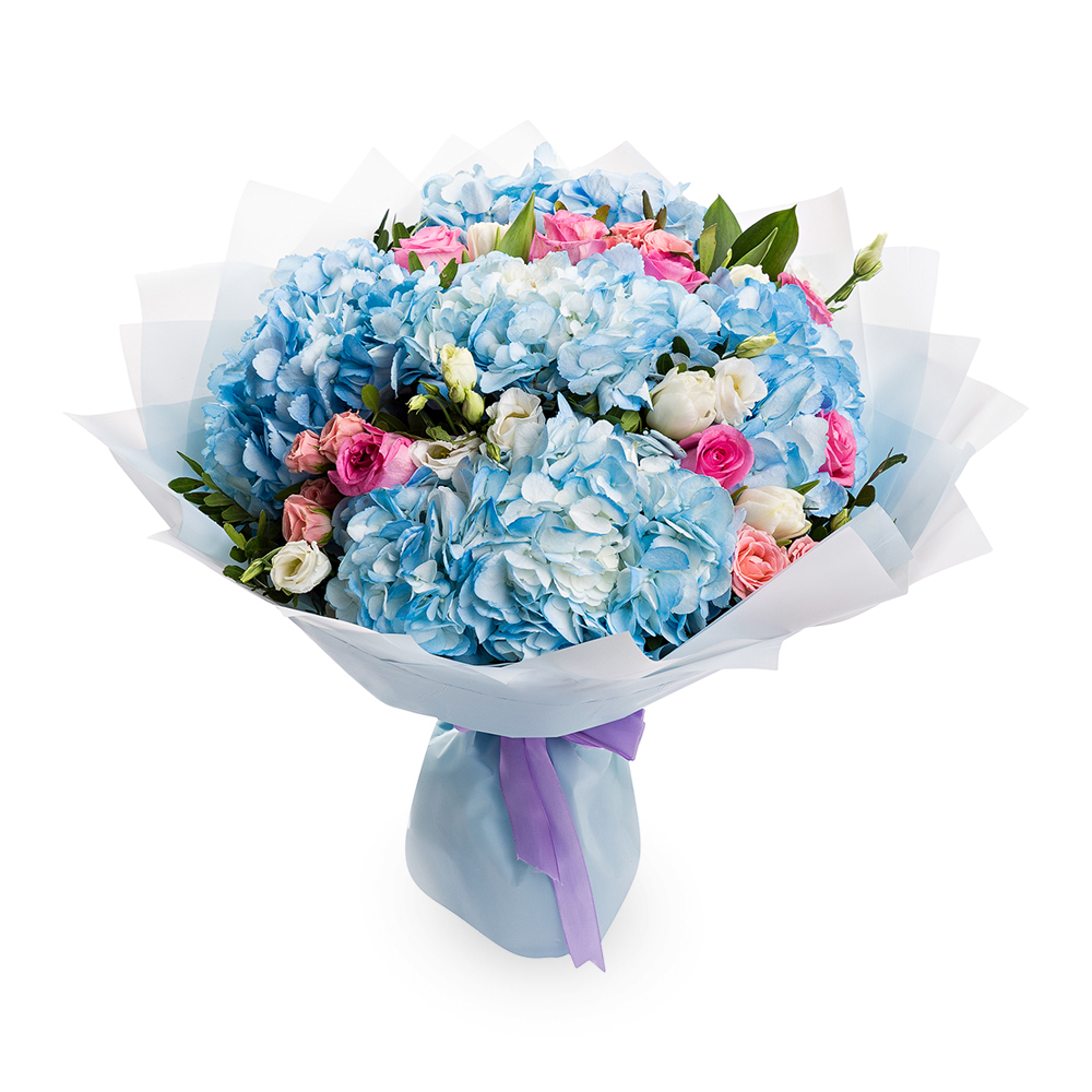Букет из гортензий, роз и тюльпанов