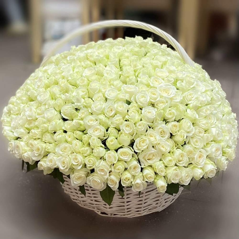 501 белая роза в корзине