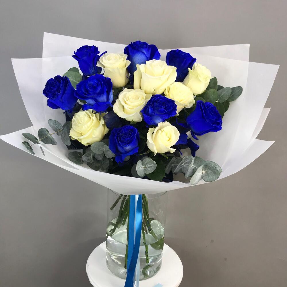 Букет из 15 синих и белых роз Эквадор