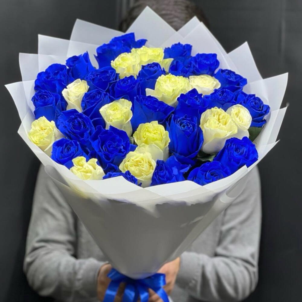 Букет из 37 синих и белых роз Эквадор