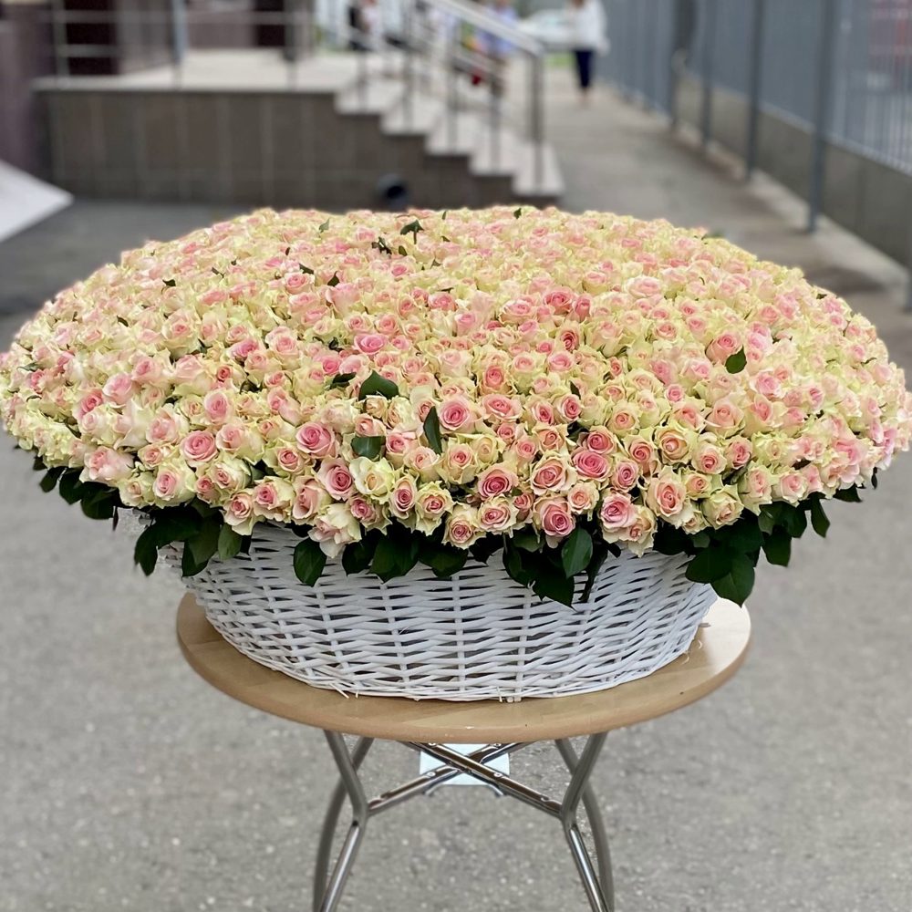 Шикарная корзина из 1001 нежно-розовой розы