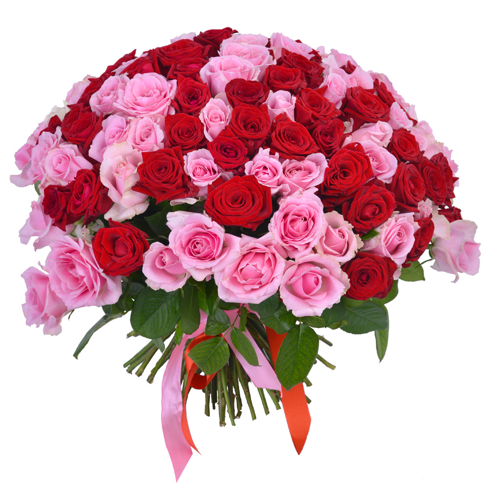 Букет из 101 красных и розовых роз Premium 40 см